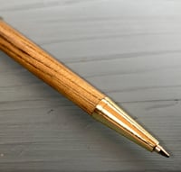 Uno degli stili più lineari delle nostre collezioni, una penna a click in legno di maggiociondolo. Molto semplice e sottile, con metallo dorato.
